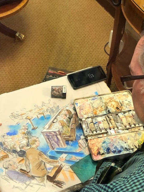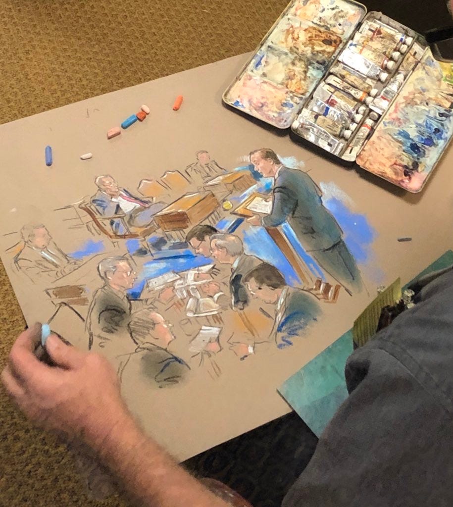 Sketch artist draws former President Donald Trump’s impeachment trial in the US Senate. Photo: Matt Laslo