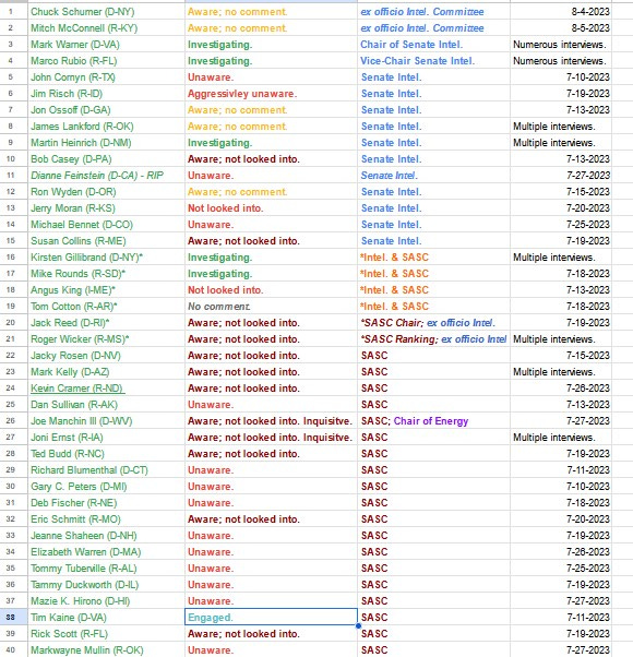 Ask a Pol’s original tally of SASC and Senate Intel members on Grusch. Source: Matt Laslo (request permission before republishing)