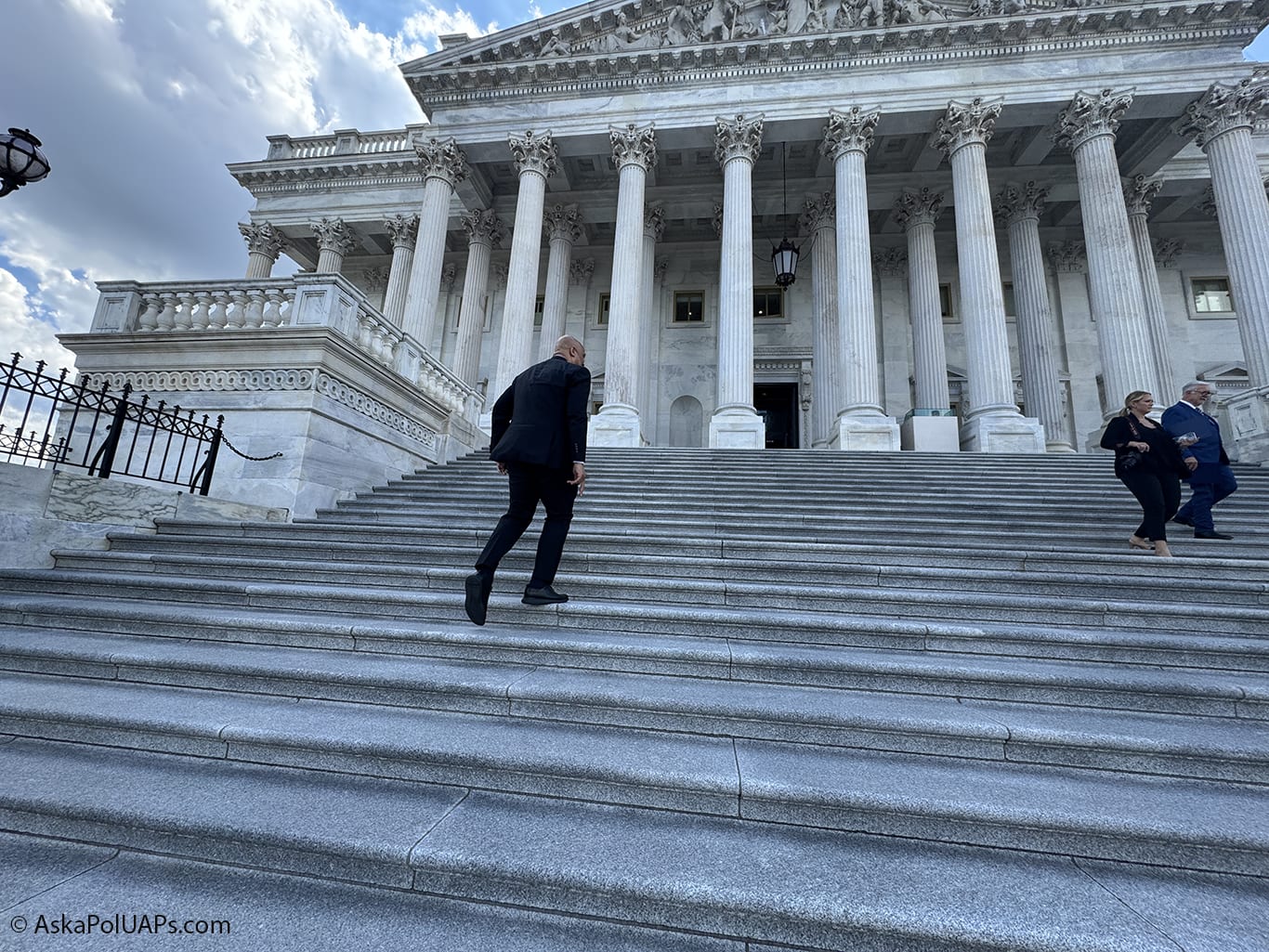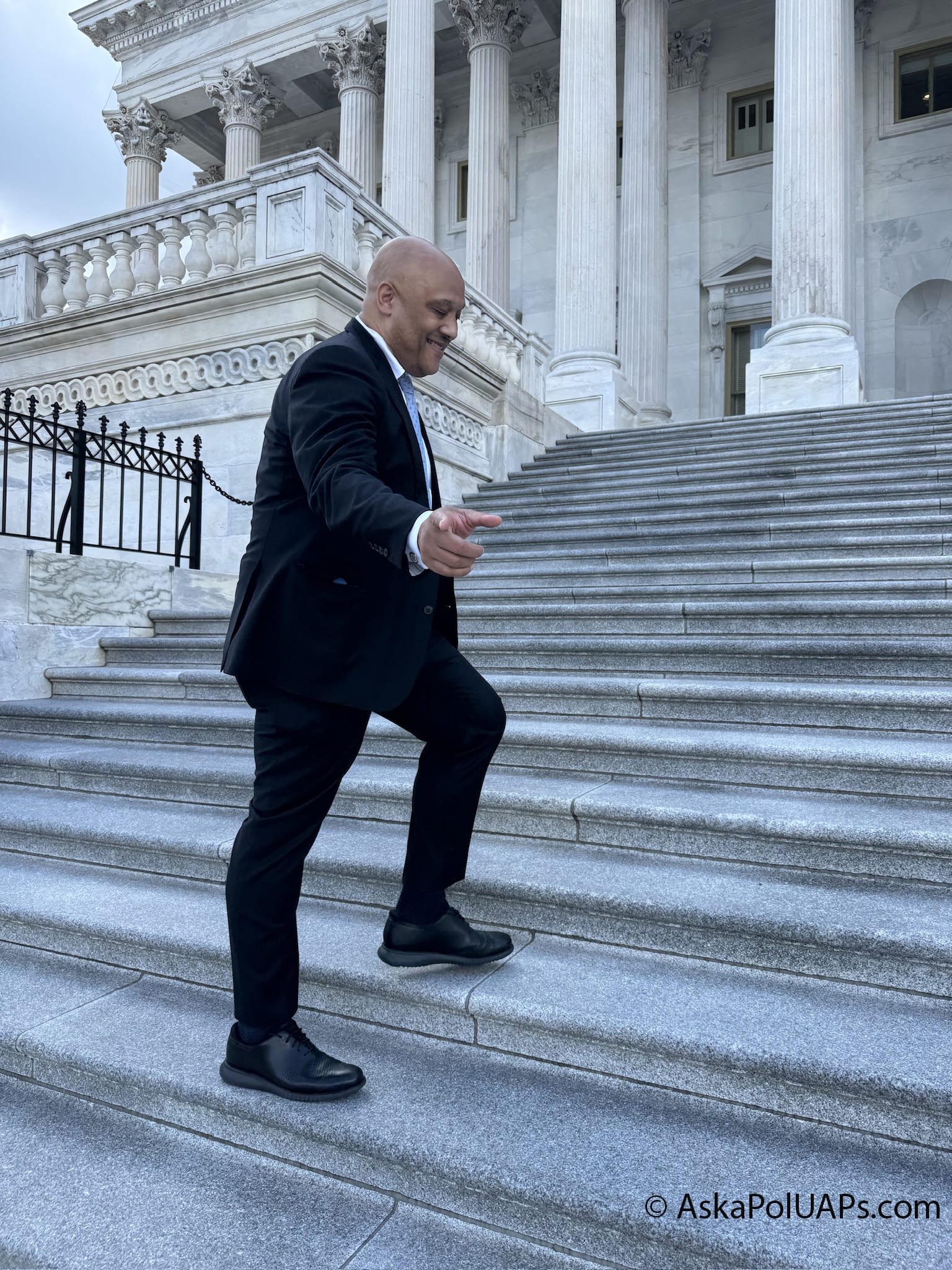 SCENE: Rep. Andre Carson — who has told Ask a Pol he wants to chair or be Ranking Member of a Select UAP Committee, should one ever emerge — is heading up the US Capitol’s steps when Ask a Pol’s Matt Laslo catches him…