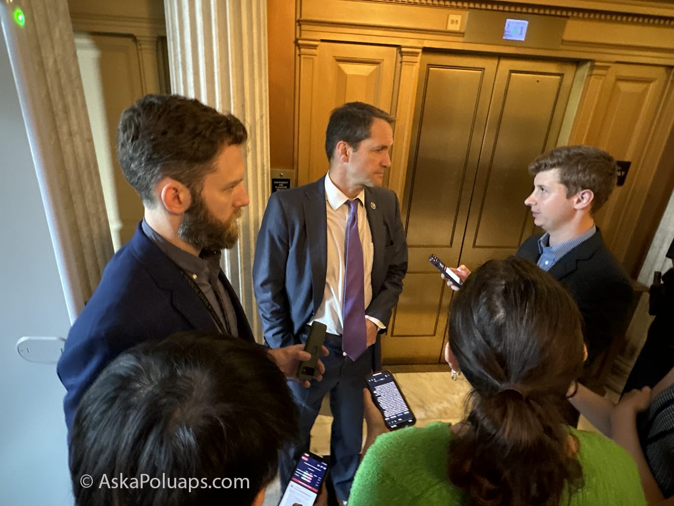 SCENE: Rep. Jim Himes is chatting with some reporters on the Capitol steps about his arm that’s currently in a sling. Ask a Pol’s Matt Laslo quietly waits in-between Himes and the Members Only sign leading up to the House floor before grabbing this quick chat with the top Democrat on HPSCI.
