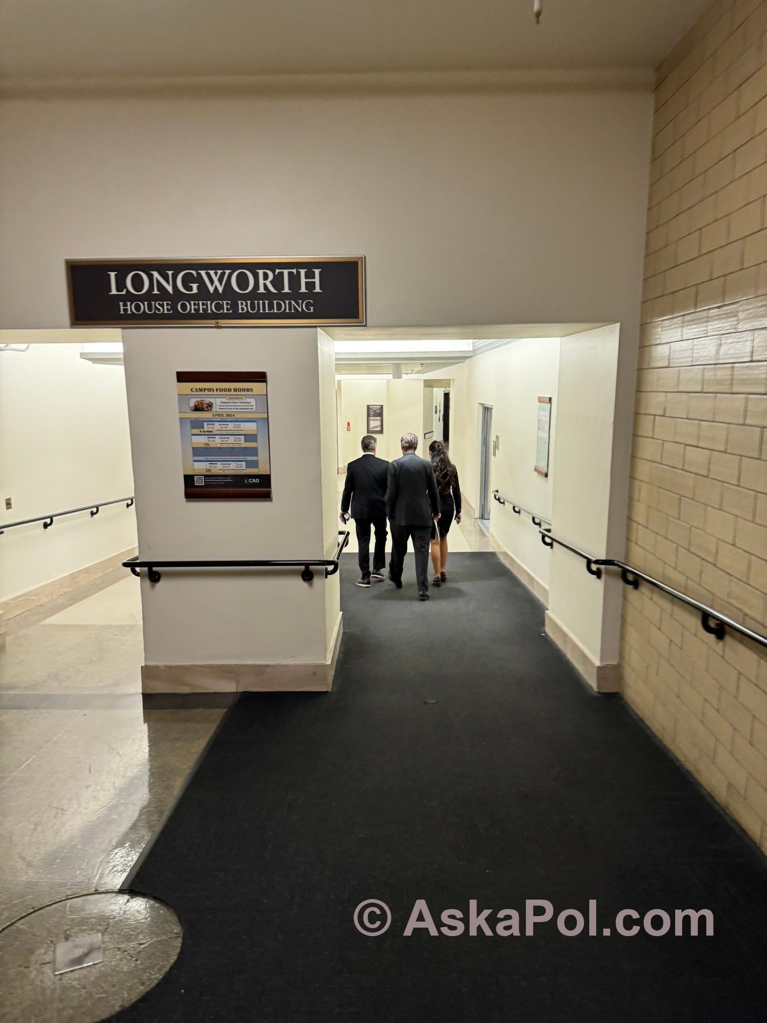 Some guy in the Longworth Tunnel does a quick introduction of Miss America — who’s walking the opposite dingy direction in the tunnel — to Rep. Luna, who he says she’s meeting with tomorrow am (so. why’d. you. interrupt. the. congresswoman. fleeing. Ask Pol. questions. now. bro…).