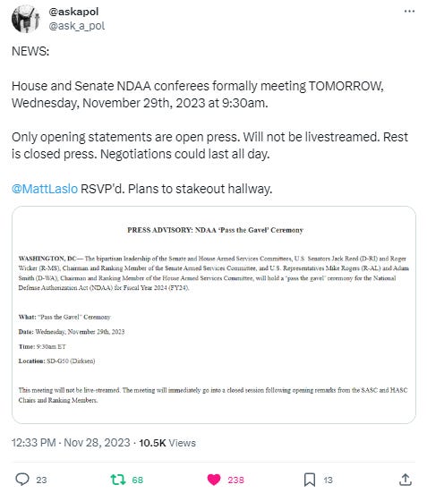 We’ve now entered a three week sprint before Congress leaves Washington until the new year—and that could have huge implications for the Senate UAP amendments included in their version of the NDAA (National Defense Authorization Act).