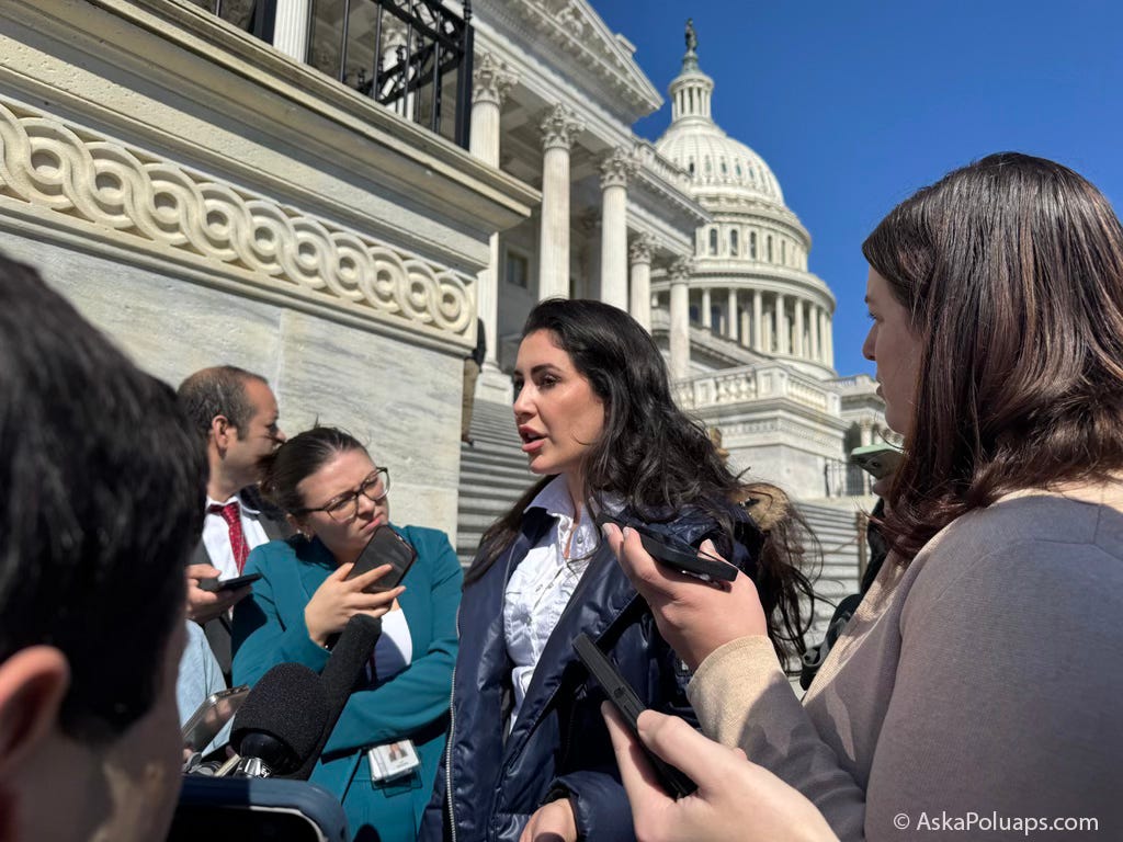 SCENE: Ask a Pol’s Matt Laslo is heading back to the Capitol steps after interviewing another lawmaker when he sees Secrets Task Force Chair Anna Paulina Luna, so he moves over to her side of the street.