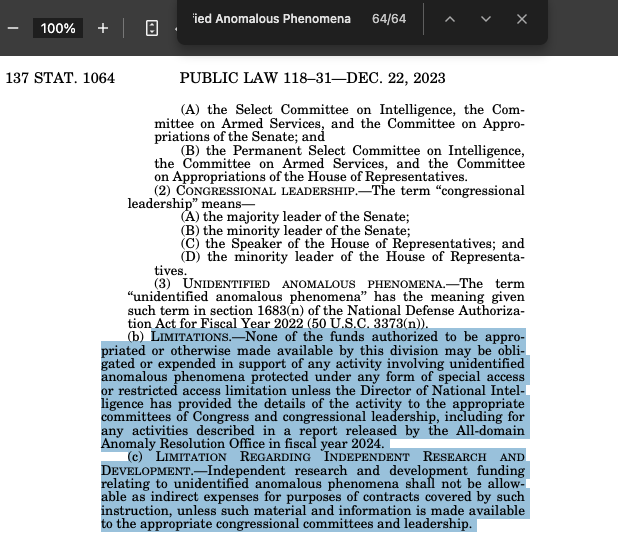 2024 NDAA* — 64 mentions of “Unidentified Anomalous Phenomena”
